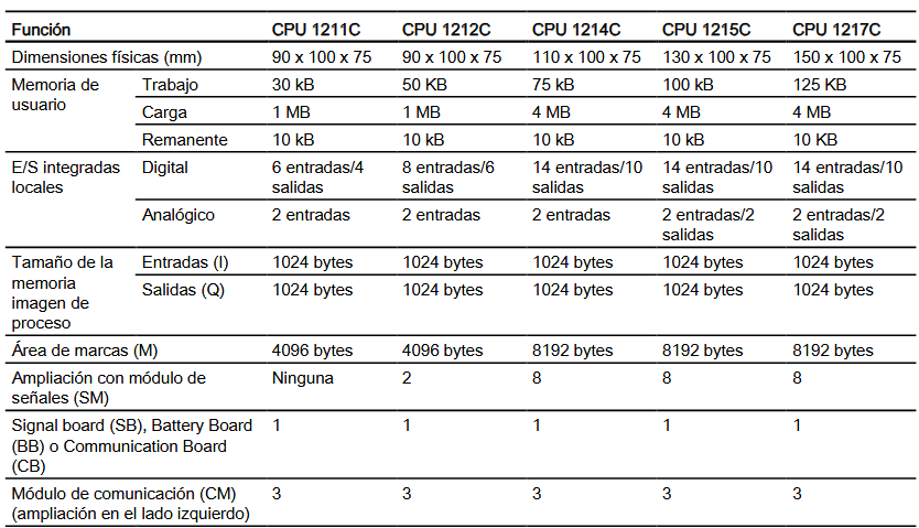 | CPU | CPU 1211C CPU 1212C CPU 1214C CPU 1215C CPU 1217C CPU 1212FC CPU 1214FC CPU 1215FC |